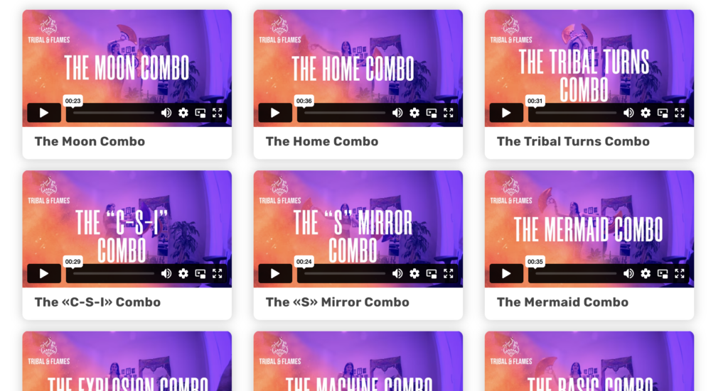 Aquí tienes los combos que hemos estudiado en el curso de Tribal&Flames® , nuestro propio lenguaje de improvisación con abanicos para que puedas recordarlo cuando necesites. Así podrás bailar y hacer shows épicos con cualquier miembro de la Tribal&Flames® Crew! Este material es solo para la Crew, úsalo con respeto. ENJOY!