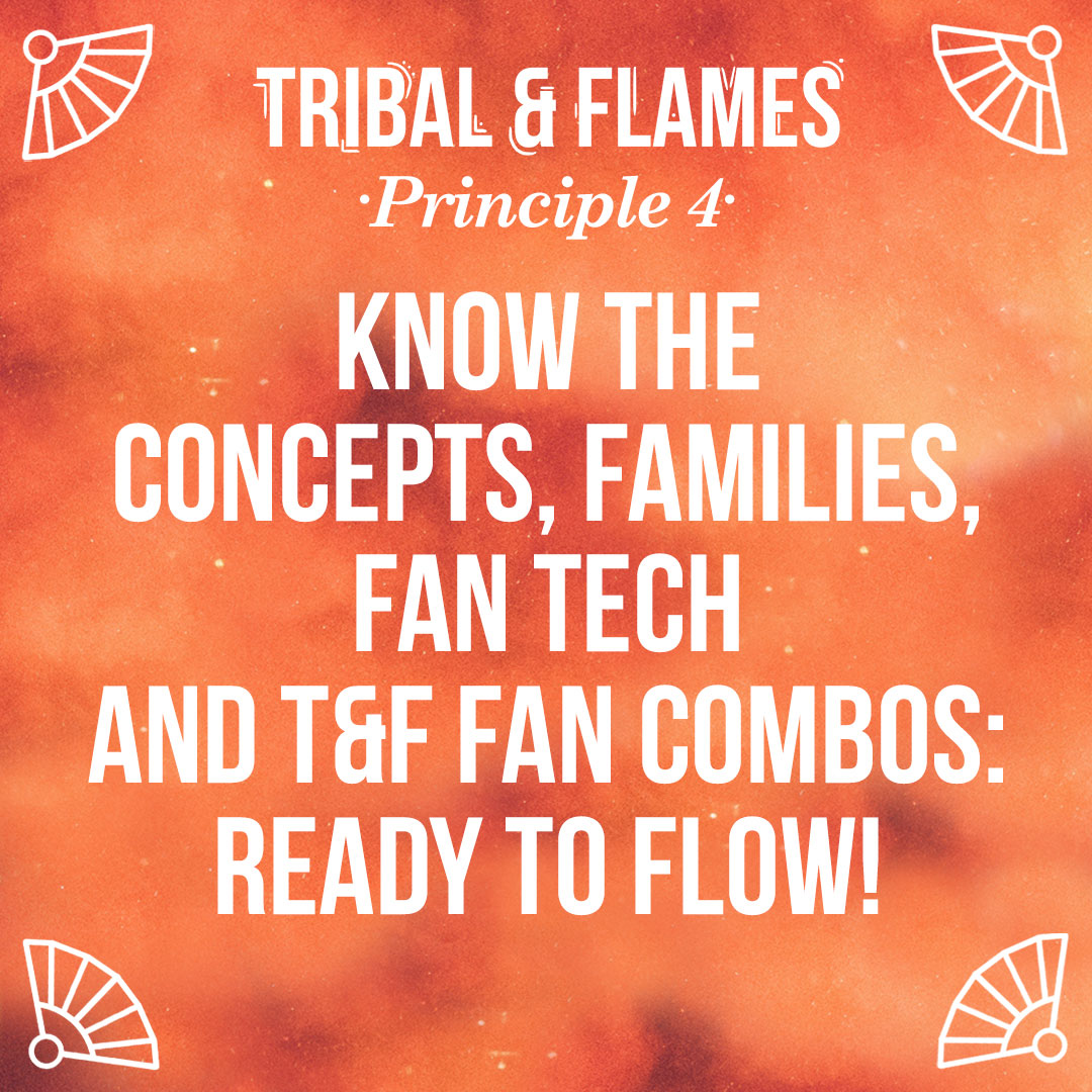 T&F® creemos más en la calidad del movimiento que no en la cantidad de movimientos aprendidos. Se pueden hacer mil y una peripecias con los abanicos, pero si no se entiende la base, si no se estudia la teoría, no se trabajan los planos y no se profundiza en los pasos básicos y transiciones, no se conseguirá un buen resultado en los pasos más avanzados. Disfruta del camino, fluye, y las fuentes o los movimientos BTB, entre muchos otros, ¡llegarán solos!